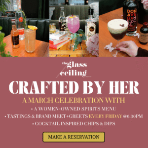 The beverage menu contains unique craft cocktails, beer, wine, and call-outs of women-owned brands.