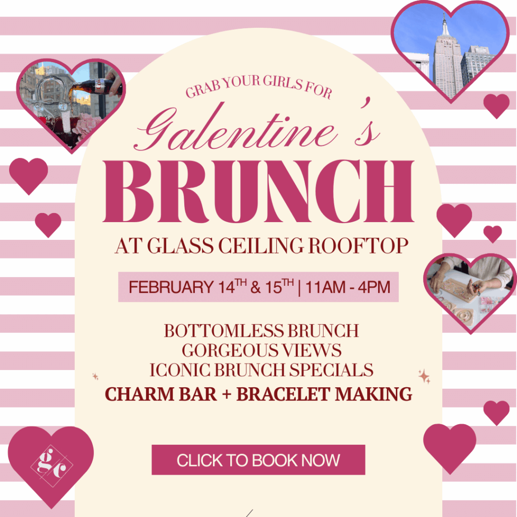 Guests enjoy indoor and outdoor seating, show-stopping Empire State Building views, and a chic escape from their everyday routine. By day, we’re known for our iconic rooftop brunch, bottomless brunch, and our viral large-format purse and stiletto cocktails, featured on FOX 5. During the week, guests love our bottomless spritzes, and by night, the space becomes a stylish late-night destination with elevated cocktails and DJ vibes.