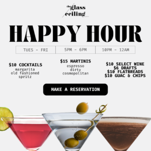 From daytime brunches to late-night cocktails, Glass Ceiling Rooftop effortlessly shifts for any occasion. Join us for our $35 bottomless brunch, unwind at happy hour, or gather for after-work drinks with a view. As the sun sets, the space transforms into a lively late-night destination with DJs, cocktails, and skyline energy. It’s also the perfect setting for private events—from birthdays and engagements to graduations—offering a one-of-a-kind rooftop experience in the heart of Midtown.